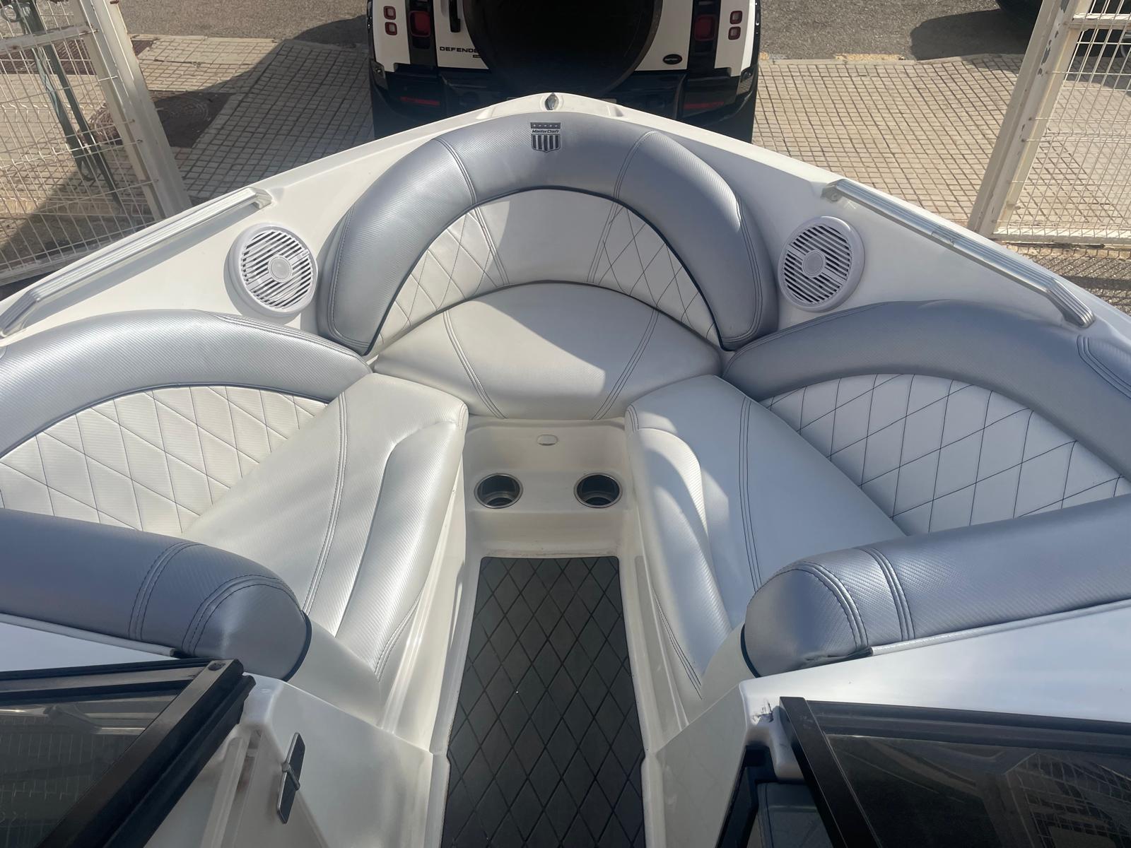 UPGRADED 6.2 OPS ILMOR ENGINE EUROPEAN PACKAGE WINDSHIELD - BTS SURF AND CONVENIENCE PACKAGE FIBERGLASS SWIM PLATFORM - NAVY BLUE TOWER SPEAKERS x 4 STAINLESS STEEL FENDER CLIPS BOW FILLER CUSHION TRANSOM WALK-THROUGH DUAL BATTERY CHARGER - 230 VOLT SALTWATER PKG GEN 2 SURF SYSTEM GPS CRUISE CONTROL SYSTEM FUSION BLUETOOTH HEAD UNIT BIMINI COVER GREY SEADEK FLOOR COVERING *** TRAILER IS NOT INCLUDED IN THE SALE OF THIS BOAT***